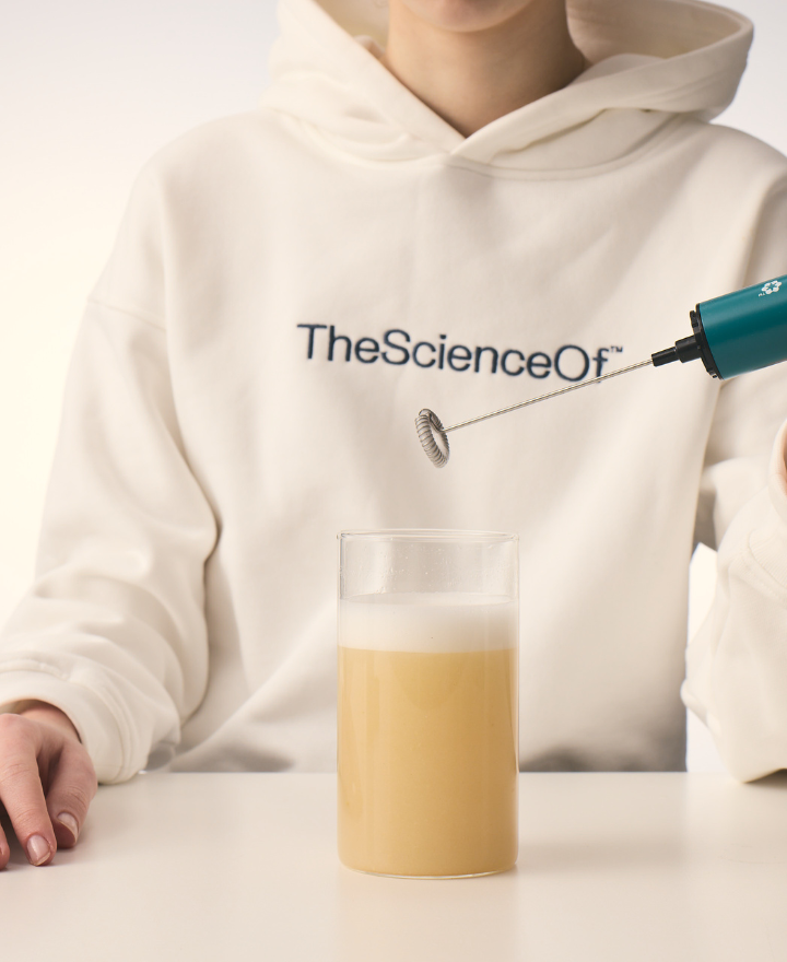 A rechargeable dual-speed wand that blends your daily serve into a smooth, clump-free drink — making your gut health ritual effortless.